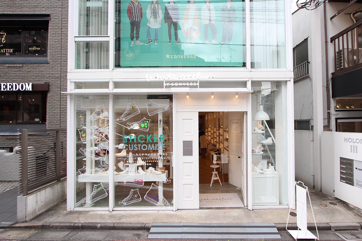 キャットストリート沿いにある、眩しいくらい真っ白な外観の「White atelier BY CONVERSE 原宿店」。2015年に国内のコンバースシューズ初の直営店として、原宿に誕生した。