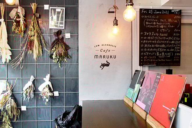 まずは行きつけのバーに「エルディンガー」を卸すことから事業をスタート。2020年5月には、下北沢にある曽我部恵一さんがオーナーを務めるカフェバー&中古レコードショップ「CITY COUNTRY CITY」の休業日を間借りして週に1回ポップアップビストロ「LOW ALCOHOLIC BISTRO MARUKU」を営業(現在は終了)、同年9月にノンアルコール飲料専門ECを立ち上げ、今回直営店をオープンするに至った。