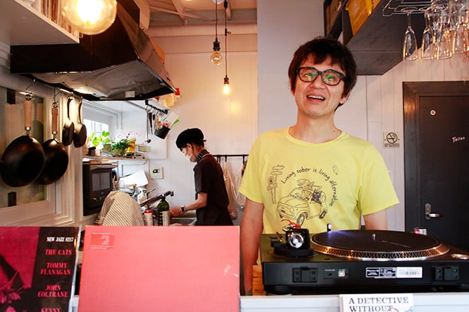 カウンターにはレコードプレイヤーとレコードが設置されており、音楽好きの桜井さんの選曲と共にノンアルコールが楽しめる。