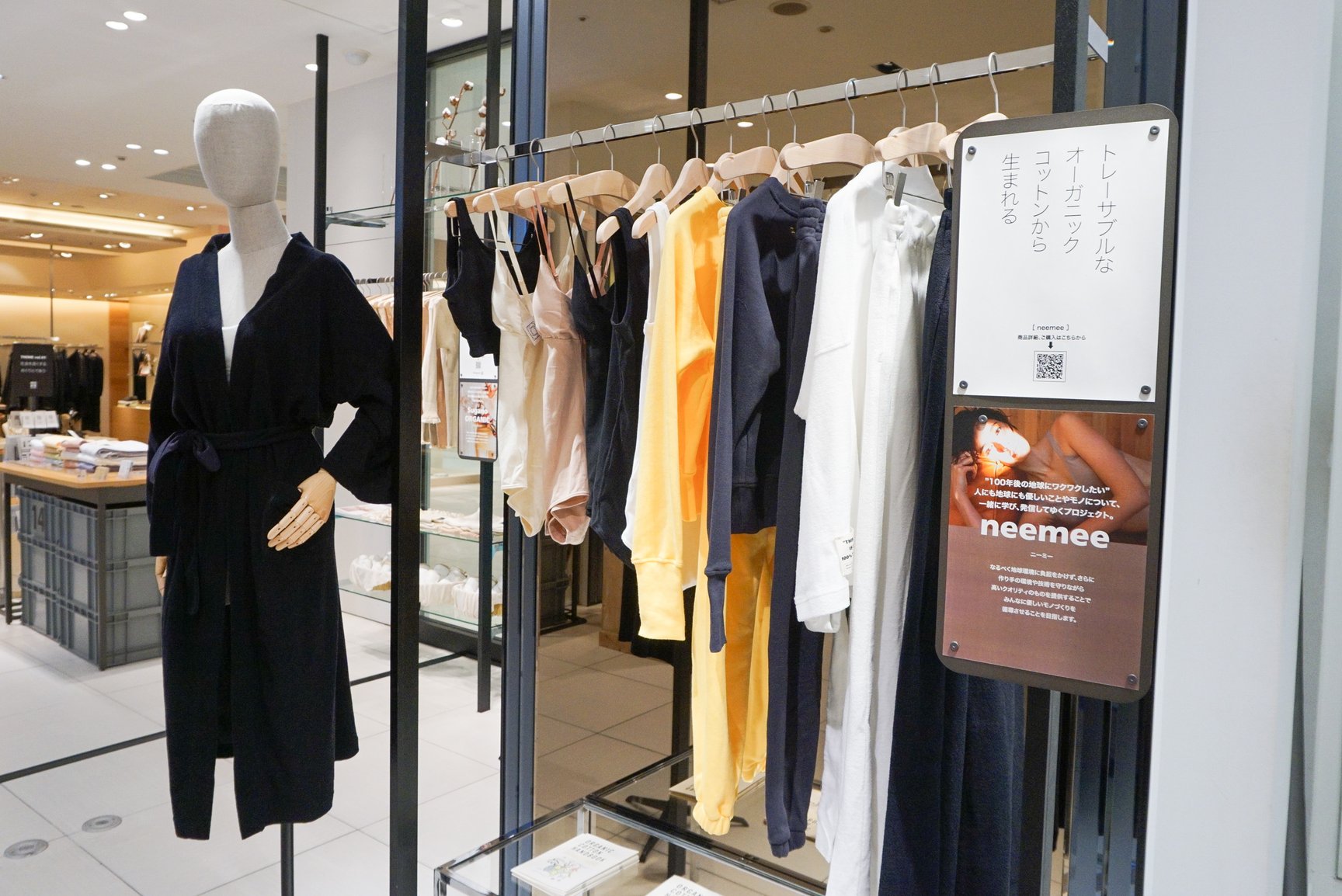 売り場ではD2Cブランドに特化し、常時20ブランドを取り揃え、3ヶ月に1度入れ替えを行う。初回のテーマには「社会を良くするめぐりと出会う」を掲げ、 「Social good」「Essential beauty」「Breaking stereotypes」の3つのポイントに基づきブランドをセレクトした。アパレルからは「ブリング(BRING)」や「リン(WRINN)」、コスメからはスキンケアブランド「シトレア(citrea)」や日本発のヴィーガンブランド「アンナチュラリー ナチュラル(UNNATURALLY NATURAL)」など、ライフスタイルからはインナーブランド「スガノ オーガニック(Sugano ORGANIC)」やタオルブランド「ティティ(tt)」といったブランドが出店。ほぼすべての商品でテスターを用意し、あえて“売らない”形態にすることで「来店客に購入へのプレッシャーを減らし、気軽に商品を試せる場にしたかった」と大西部長は話す。ブランドセレクトには入社3年目の若いスタッフも携わった。