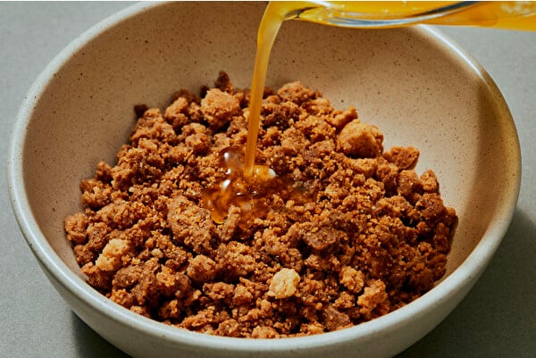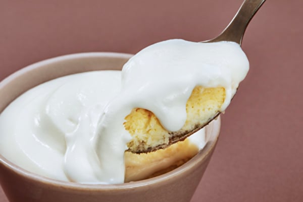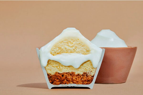 とろけるムース、ぬくもりのあるスフレ、焦がしバターの染み込んだザクザククッキーの5層仕立ては、温めて食べるのに最適なバランスを追求して作られているといいます。