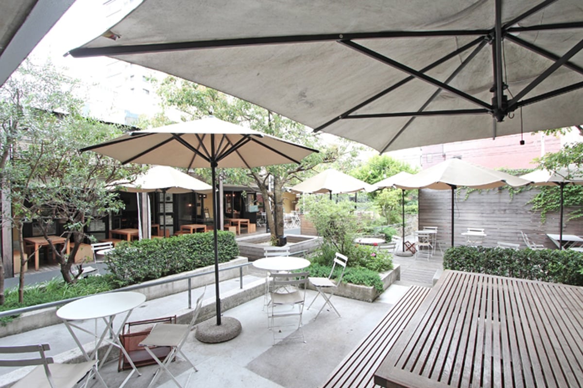 テラス席はペットもOK。空の下で季節を彩るクスノキを眺めながら味わうもよし、ちょっとした通りがかりにテイクアウトするもよし。シーンにあった使い方ができる。