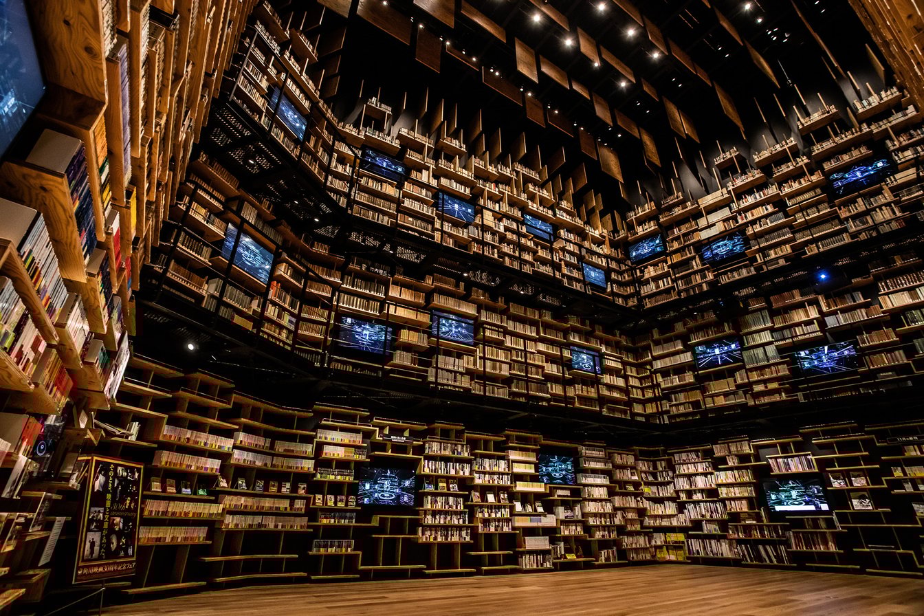 「本棚劇場」は、KADOKAWAが展開する「ところざわサクラタウン」のランドマークとして誕生した「角川武蔵野ミュージアム」内のメインスポット。高さ約8メートルの巨大本棚にかこまれた空間に、KADOKAWA刊行物と、角川源義文庫、山本健吉文庫、竹内理三文庫などの個人蔵書約5万冊が並んでいます。また、定期的に「本と遊び、本と交わる」をコンセプトとしたプロジェクションマッピングの上映も行っているようです。