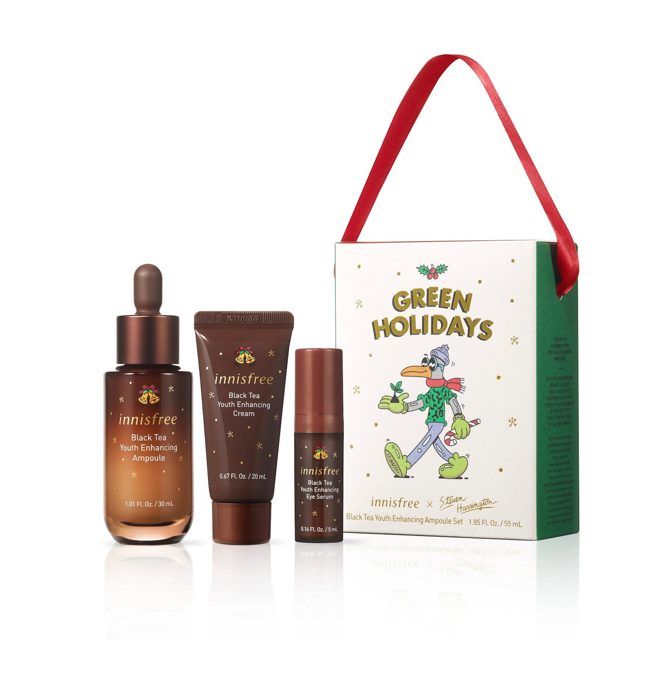 「ブラックティーライン」からは、美容茶葉を発酵させて抽出した独自のエイジングケア成分「Rコンセントレート」を含む「ブラックティー ユース セラム」のホリデー限定デザインのスペシャルセットを販売。価格は税込3850円。