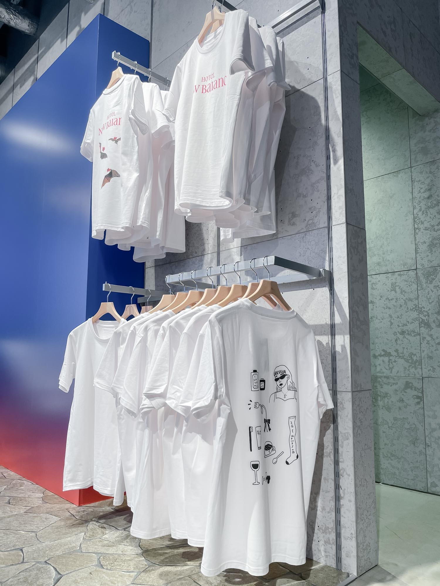 なお、期間中はとんだ林蘭が手掛けた5種の限定Tシャツ(各4950円)を数量限定で販売。ニューバランス原宿で税込1万円以上購入した人にオリジナルルームキーホルダーを、コンテンツを体験したmyNB会員にホテルスリッパを先着順で配付する。