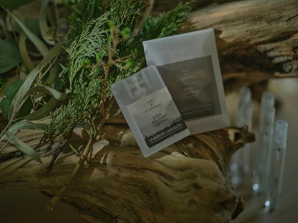 香りは、「UNDERSON UNDERSON」の肌着に使用している和紙の原材料が“針葉樹”であることから、針葉樹のヒノキの香りがアクセントに。