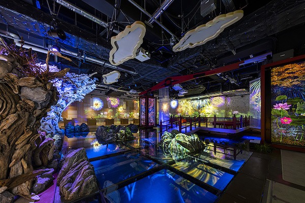 日本の和の空間を演出した「MIYABI」では、光の切り絵作家・酒井敦美氏によるオリジナルプログラムが用意されており、圧巻の切り絵作品を楽しめる。