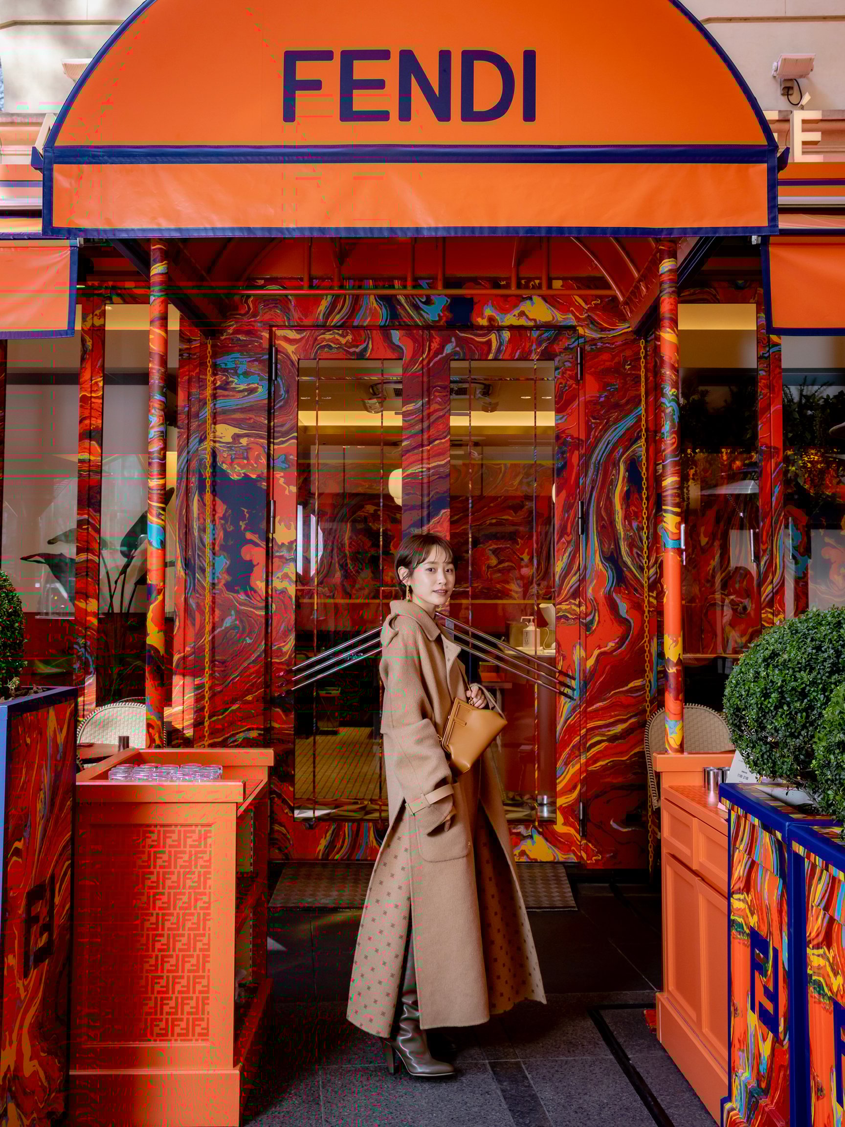 「フェンディ カフェ バイ アニヴェルセル」が表参道に再び登場 ピーコックブルーとオレンジの店舗デザインに