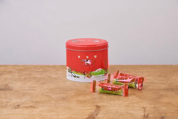 レトロかわいい福岡代表のお菓子『チロリアン』とコラボした、『カウブランド⾚箱×チロリアンコラボ⽸』(税込1512円)にも注目を。