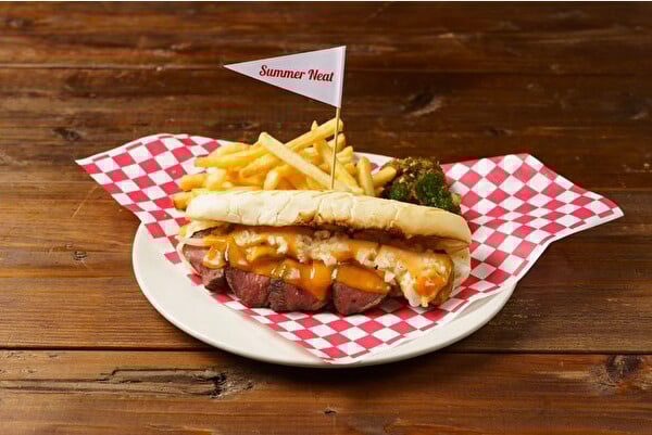 『PHILLYS CHEESE STEAK SANDWICH PLATE』(1880円)は、上質な牛肉にチーズソースをたっぷり絡めたボリューム満点のサンドイッチ。