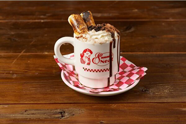 『BURN HOT CHOCOLATE』(980円)は、たっぷりホイップに焼きマシュマロやココアビスケットを散らしたデザートドリンクだといいます。
