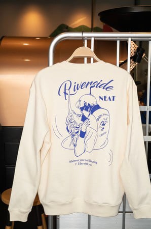 『RIVERSIDE NEAT Sweat(S/M/L/XL)』(税込7200円)はオールシーズン着られる起毛トレーナーに、今回のコラボのために描かれたオリジナルイラストをプリント。