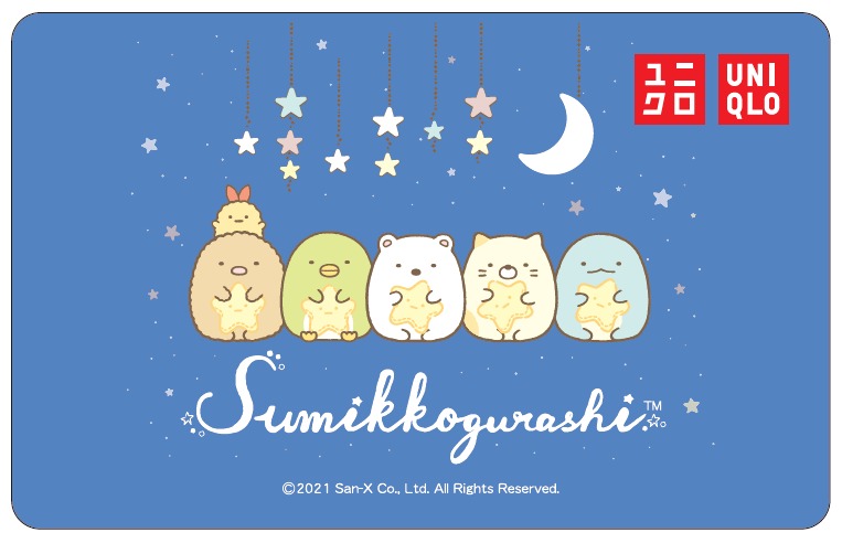 また、キッズウェアだけでなく、ユニクロギフトカードとユニクロ イーギフト カードにも「すみっコぐらし」とのコラボデザインが登場。これらのカードは、3,000円、5,000円、10,000円(ユニクロ イーギフト カードの場合は1,000円より)から入金して全国のユニクロ店舗やオンラインストアにてキャッシュとして使えるものだ。こちらもスウェットと同様、星空をモチーフにしたほんわか落ち着いた可愛らしいデザイン。入金額がなくなった後も記念として保管しておきたいアイテムとなっている。こちらも発売は12月17日より。