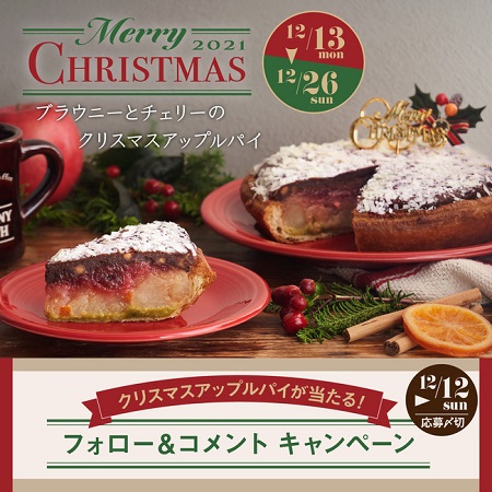 ファンゴーが展開するアップルパイ専門店「グラニースミス アップルパイ アンド コーヒー」は、2021年クリスマス限定『ブラウニーとチェリーのクリスマスアップルパイ』を販売する。