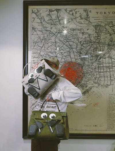 今回は、従来のFROGMANで使用しているミリタリーテント生地ではなく、アップサイクルしたアメリカのヴィンテージシーツを使用し、全てハンドメイドで製作。ヴィンテージシーツのナチュラルなダメージと柔らかな風合いが特徴で、一点一点生地の質感や色使いが異なる1点物となる。全長125㎝のビッグサイズでの展開で、価格は税込7万7000円。