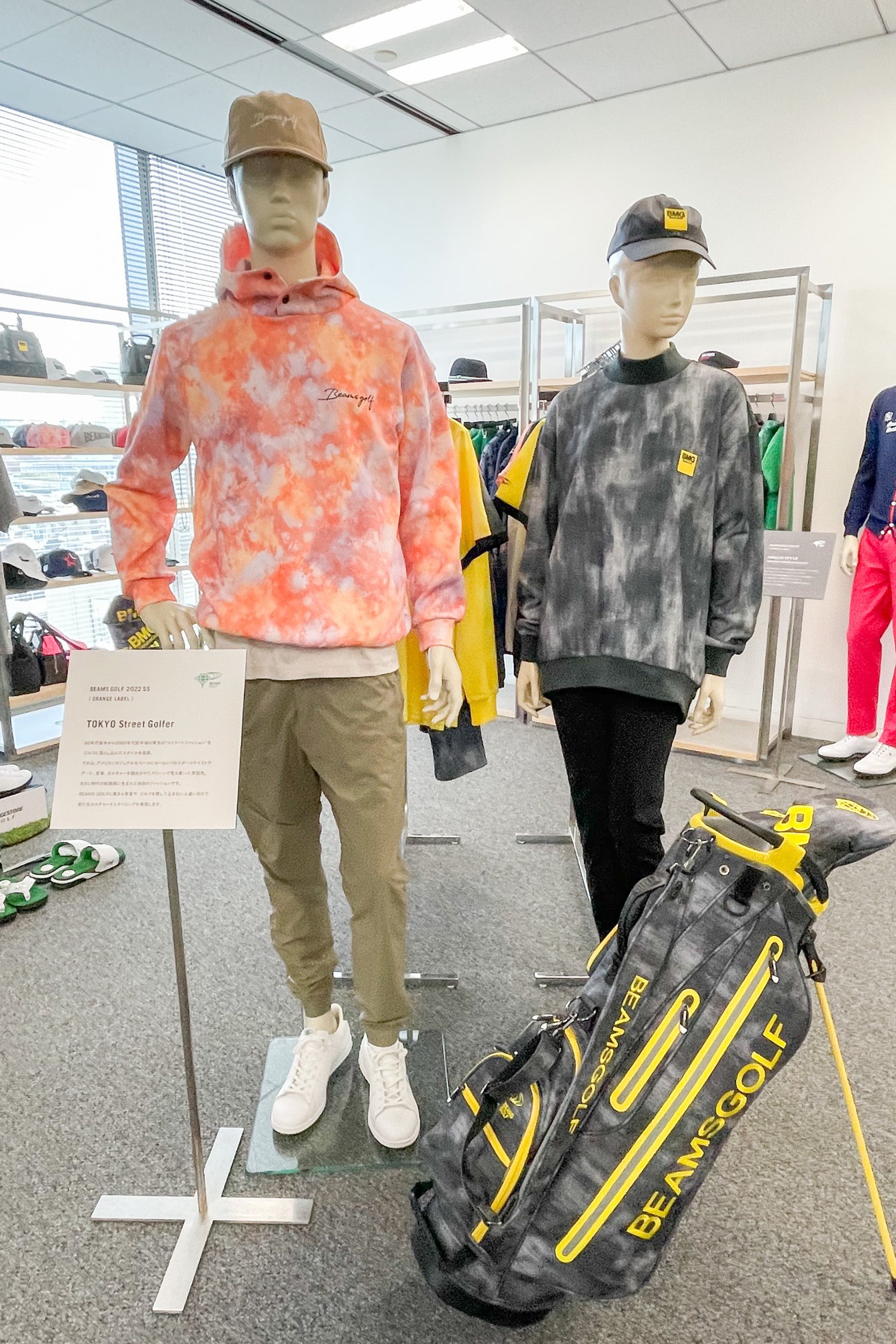 ビームス ゴルフは2011年春にデビュー。カジュアルテイストを取り入れたファッション感度の高いアイテムを展開する「オレンジ レーベル(ORANGE LABEL)」と、伝統的なゴルフスタイルをシルエットや色使いでモダナイズした「パープル レーベル(PURPLE LABEL)」の2つのレーベルで構成し、オレンジ レーベルは20〜40代、パープル レーベルは40〜70代の年齢層がボリュームゾーンとなっている。同社がウェアを提供するプロゴルファーの渋野日向子選手の活躍に加えて、コロナ禍でゴルフを始める若者が増えたことや、ドレスコードを緩めるゴルフ場が広がりを見せていることなどを背景に、最近はオレンジ レーベルの動きが特に良いという。