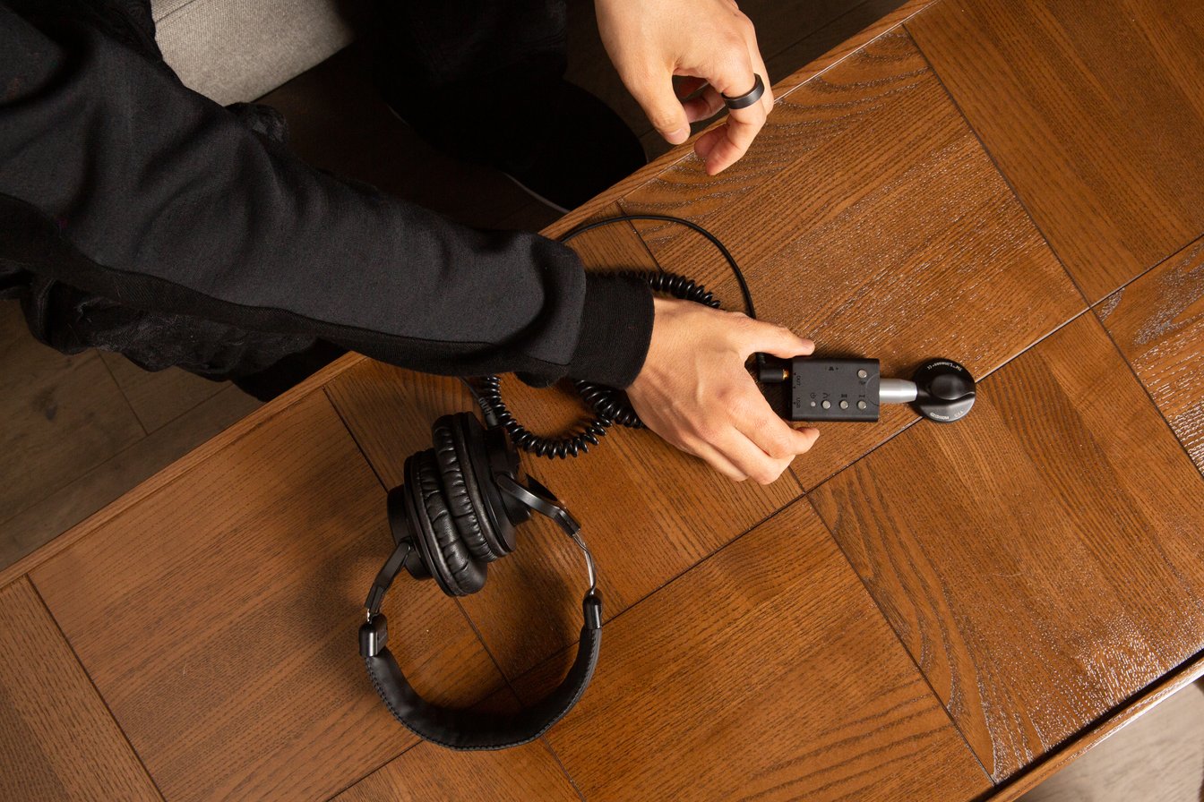 真鍋:僕は体内の音を聴きたくて買いました。面白いマイクを探していたら行き着いた感じですね。何かの作品に繋げられるかなと思って。使い方によっては、例えばダンスパフォーマンスでダンサーがこれをつけて踊っている時に、同時に生の心音が聞こえるとか。