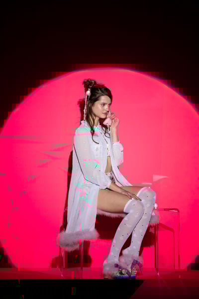 伊藤:展覧会で自分がやりたいことやコンセプトに合うお三方のデザイナーに、自分で企画書を作って、お会いしてお願いしました。「私は今こんなことを考えていて、やりたくて、共通する何かがあったら、服を作ってください」とお伝えしたら、皆さん快く色々なアイデアを駆使してくださって。ボディソングさんは乃木坂自体の衣装を制作してくださったり、私もランウェイを歩かせていただいたりと思い出深いブランドだし、田中さんと半澤さんは以前から気になっていたブランドだったので、どんなものができるのか本当にワクワクしました。
