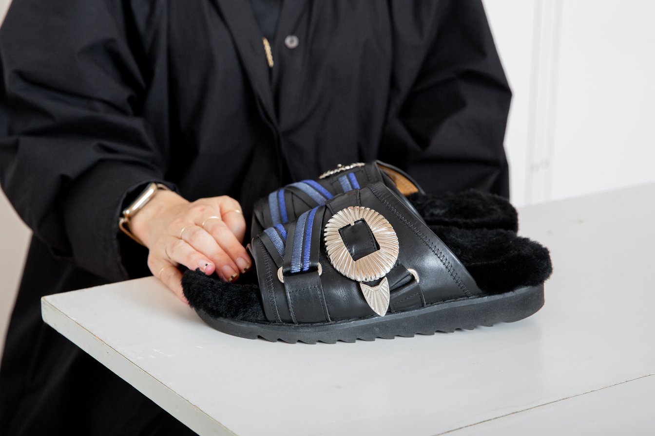MIKIKO:これも仕事で重宝していて。スタジオ内とか、ステージの作り立てのセットの上とか、現場で土足禁止のエリアも多いから着脱しやすいサンダルはありがたいんです。トーガのサンダルは脱ぎやすいし、歩きやすい、そして何と言っても可愛い。