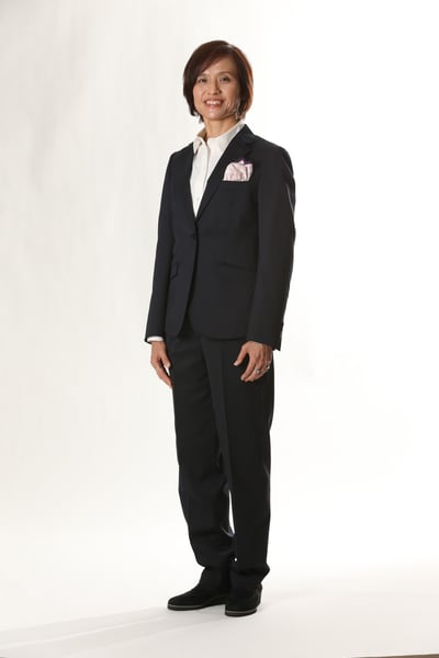 新スーツは、選手とスタッフ用にウィメンズ、メンズの2型を製作。ウィメンズのジャケットは移動の多い選手の動きやすさを考慮しつつ、全体的にシャープな印象に仕上げた。パンツは座った時や長時間の着用時にも楽に過ごせるよう、後ろベルトにゴムを内蔵。素材にはハリ感と肌離れが良い高密度のタイプライター素材を採用した。メンズは、ジャケットの右ポケットの上に「チェンジポケット」と呼ばれる小ぶりのポケットを付けるなど、ブリティッシュテイストを加えたデザインに仕上げた。いずれも、環境に配慮した再生素材を使用している。