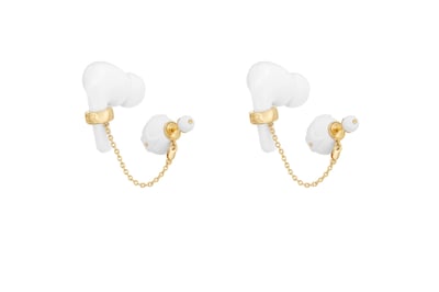 ピアスは部族文化からインスピレーションを得たアシンメトリーなデザインで、片耳のみでも着用可能。クリアカラーのパーツ部分にはイタリア・フィレンツェで作られた透明な樹脂を使用した。YouTubeでは工房での製作過程を追ったビデオを公開している。
