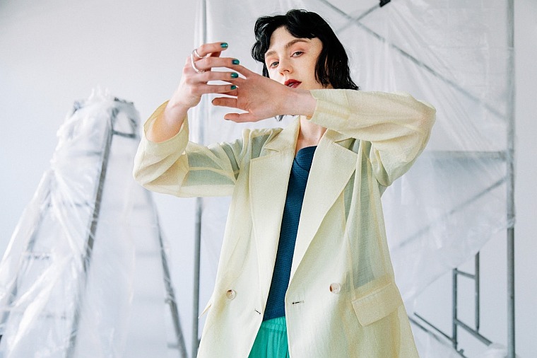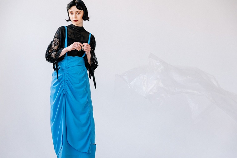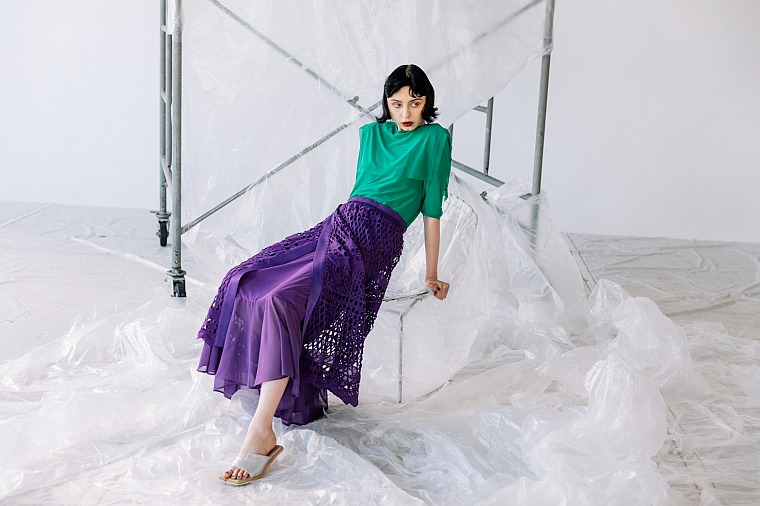 繊研plusコードナインの「アウラアイラ」は、22年夏物の第2弾に位置付ける「ハイサマーコレクション」(3~5月納期)で、オケージョン対応もできるきれいめなアイテムを増やす。明るい色で快活さを取り入れ、ブランドらしいアクティブな印象に仕上げた。