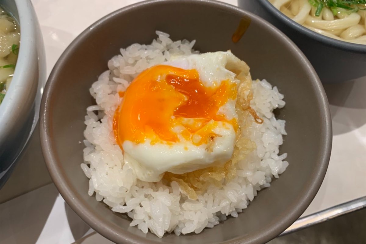付け合わせには揚げ玉子ご飯を推したい。薄めについたパリパリの衣と、橙色に輝く黄身をご飯に絡めてかきこむ。塩が少し振ってあり、玉子本来の濃厚な旨味が味わえるが、卓上にあるだし醤油をかけて味変するのもおすすめ。