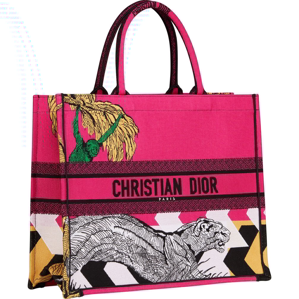 店内では、ブランドの最新のコレクションや、ウィメンズ、メンズ、ファイン ジュエリー、タイムピーシズのアイテムを取り扱っている。また、テンポラリーストア限定の「ディオール ブックトート」(税込46万2000円)を販売。2022年春夏コレクションで登場したトワル ドゥ ジュイの新柄「D-Jungle Pop」にタイガーモチーフの刺繍を組み合わせた。