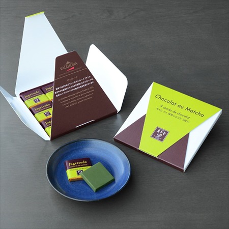 「キャレ ドゥ 抹茶ショコラ」9枚1100円(税込)は、フランスのチョコレートの老舗ヴァローナ社とのコラボ商品。