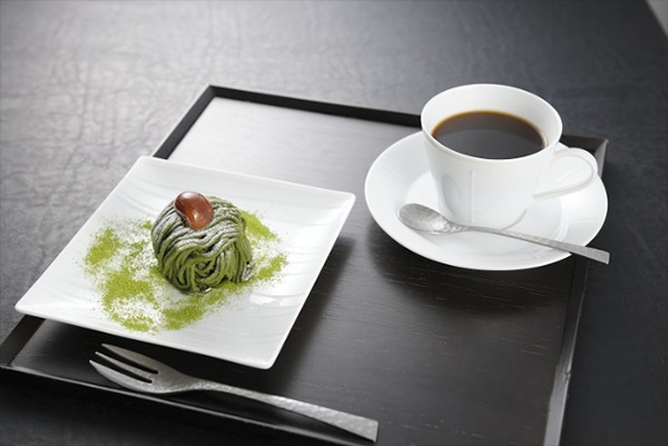 寿月堂の高級抹茶をふんだんに使用した「濃厚抹茶 モンブランセット」1585円(税込)は、メディアでも話題の銀座 歌舞伎座店人気No.1スイーツ。