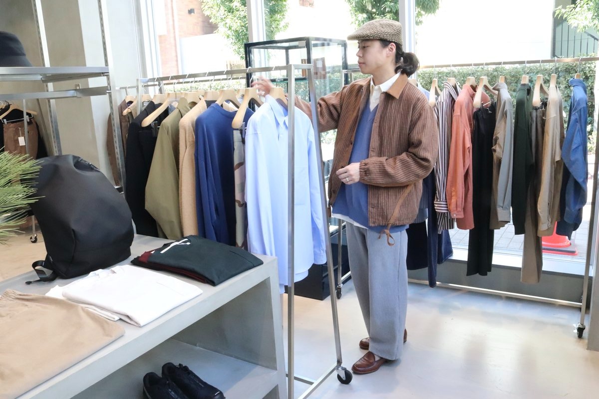 「2022年の2月に1LDK AOYAMA HOTELから1LDK AOYAMAへ移転リニューアルし、新店舗としてオープンしました。他店舗に比べると、少し特徴のある服や新しいものを提案していくようなイメージのセレクトになっています。今はメンズがメインですが、今後はレディースのボリュームを増やしていく予定です。以前より駅に近く、アクセスが良くなったので、フラっと買い物や用事のついでに入ってくれるお客さんも増えました。表参道という土地柄、おしゃれで美味しいご飯屋さんが揃っているので、お出かけがてら足を運んでもらえると嬉しいです。」