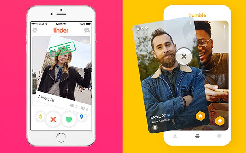 スワイプインタラクションを採用するTinder (左) と Bumble (右)