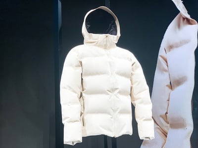 ブリュード・プロテイン素材を使ったアイテムではデニムやフリースを開発し、デニムのセットアップやスキーウェアにも使えるテクニカル素材のセットアップ、フリースのトップスを合わせた全5型を展開。テクニカル素材のセットアップは無染色で、素材そのままの色を採用している。ゴールドウインの渡辺貴生社長は「満足できるレベルにきている。アウターは素晴らしい出来」と称賛した。スパイバーとは今後、ファーなどの素材開発を進めていく予定だという。