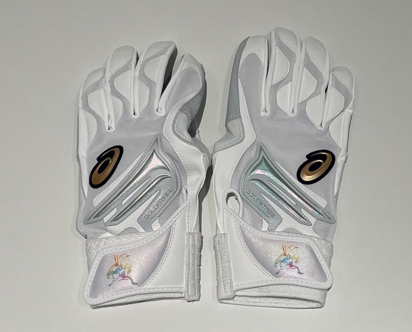 バッティング用手袋は、左手の親指部に特殊なクッションを配置することで、打撃時の安心感を追求した。大谷選手は、バッティングで詰まった時に慢性的にしびれを感じたり、特に引っ張ったホームランの時に痛みがあったと言い、握り感を維持しながら左手の親指付け根を守る手袋を採用した。
