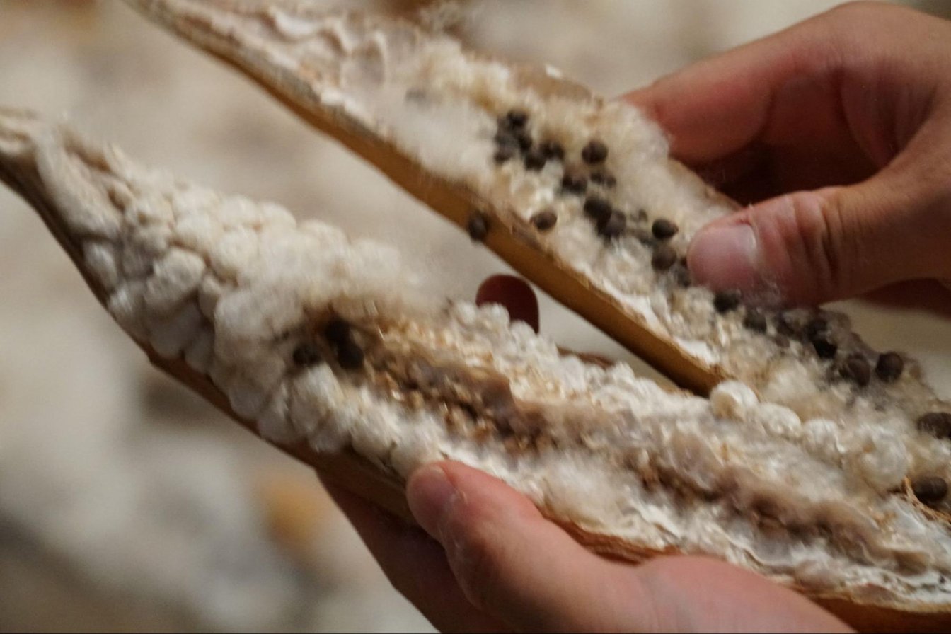 KAPOK KNOTは「Farm to Fashion」を掲げ、農園からこころよい暮らしを届けるファッションブランドだ。東南アジアにあるカポックという植物を活用し、サステナブル素材を用いたアパレルを生産している。カポックは、薄さと暖かさを兼ね備えている画期的な素材だったが、繊維の軽さと短さによって加工が難しいとされていた。