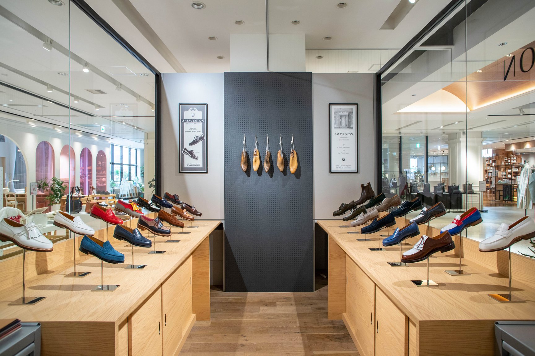 ニールズヤード レメディーズの新店舗は、環境に配慮したアップサイクル素材を活用したブルーグラスやペンダントライトを採用。フェイスケア商品をはじめ、ボディケアアイテムや、エッセンシャルオイルなどを展開する。リニュアールしたジェイエムウエストンの店舗では、「#180 シグニチャーローファー」や「#641 ゴルフ」などブランド定番の革靴のほか、スニーカーなどもラインナップ。個人に合わせて革靴を注文できるパーソナライズドオーダーや修理のサービスも受け付けている。