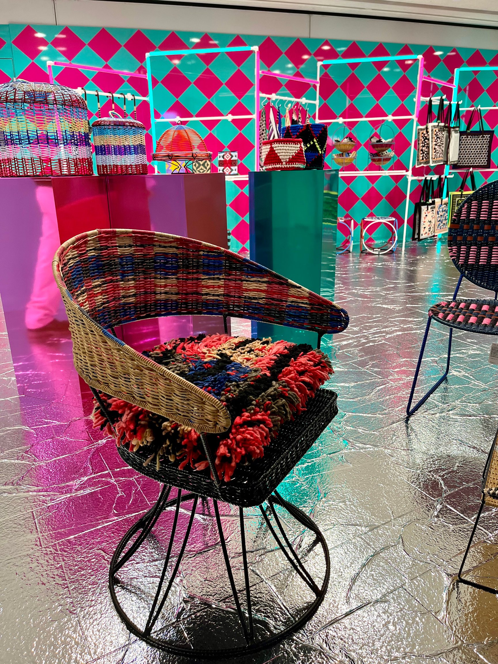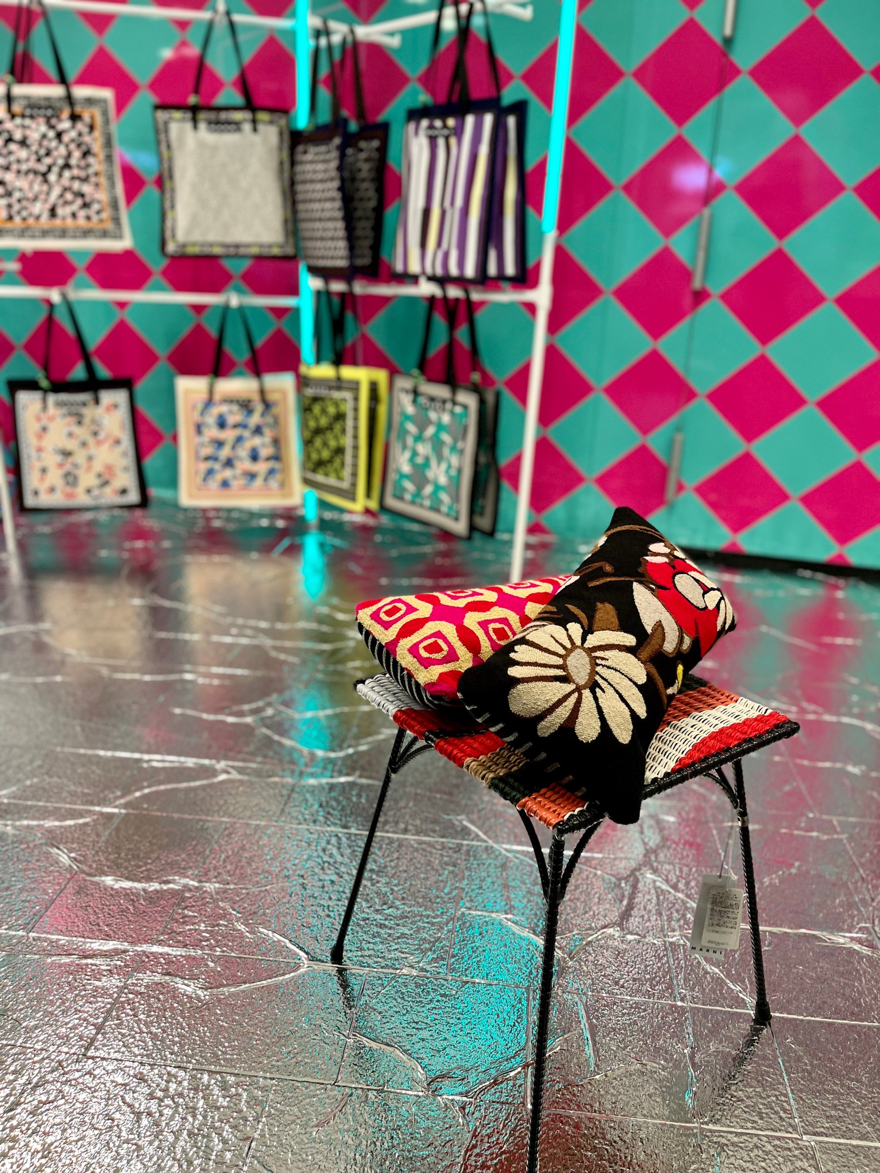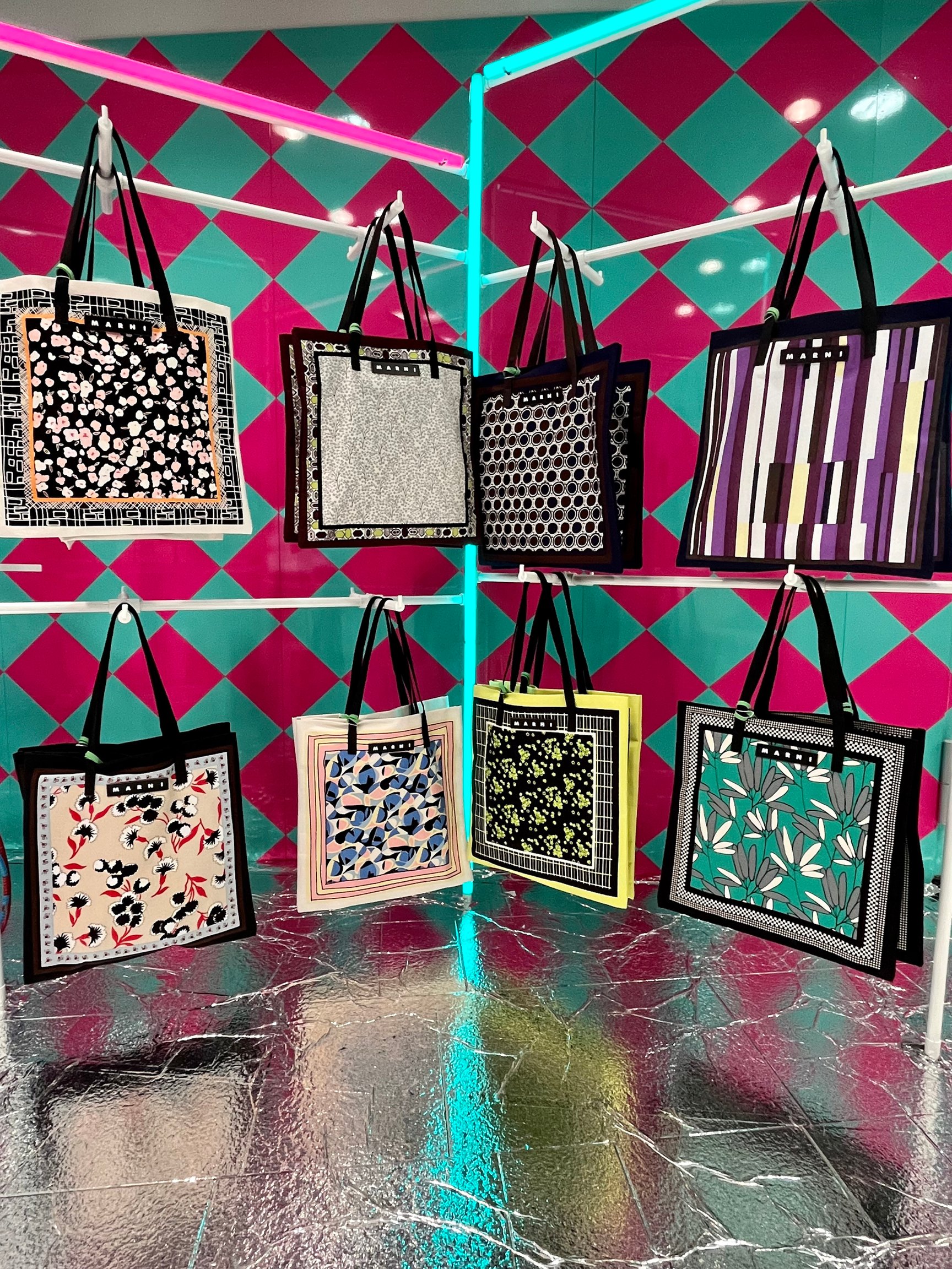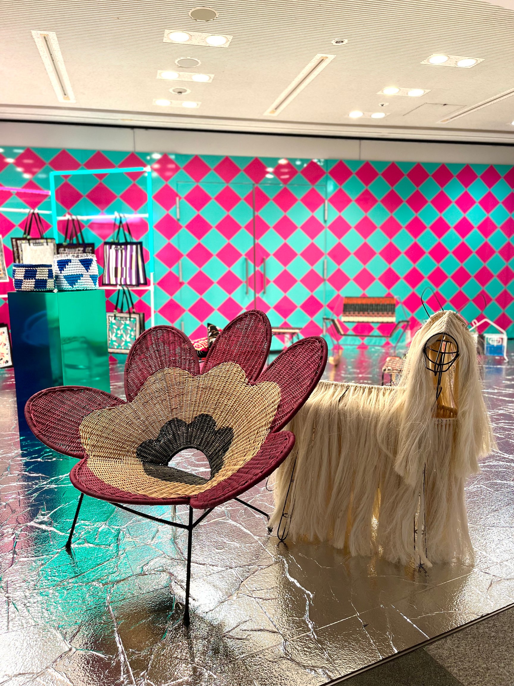 表参道ヒルズでは、新作である動物をモチーフにしたアニマルバスケット(1万9800円)と、日本の伝統素材である畳を用いたタタミトート(1万4300円)を販売するほか、ストライプバッグ(1万8700円)の「フレッシュレモン」、ハンモックバッグ(2万4200円)の「アイボリーブルー」、バンダナトート(1万9800円)の「バイオレット」と「チェスナットブラウン」など人気バッグの新色を先行発売する。