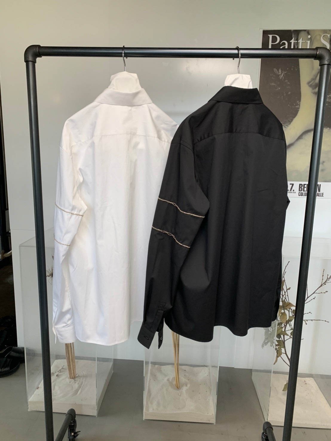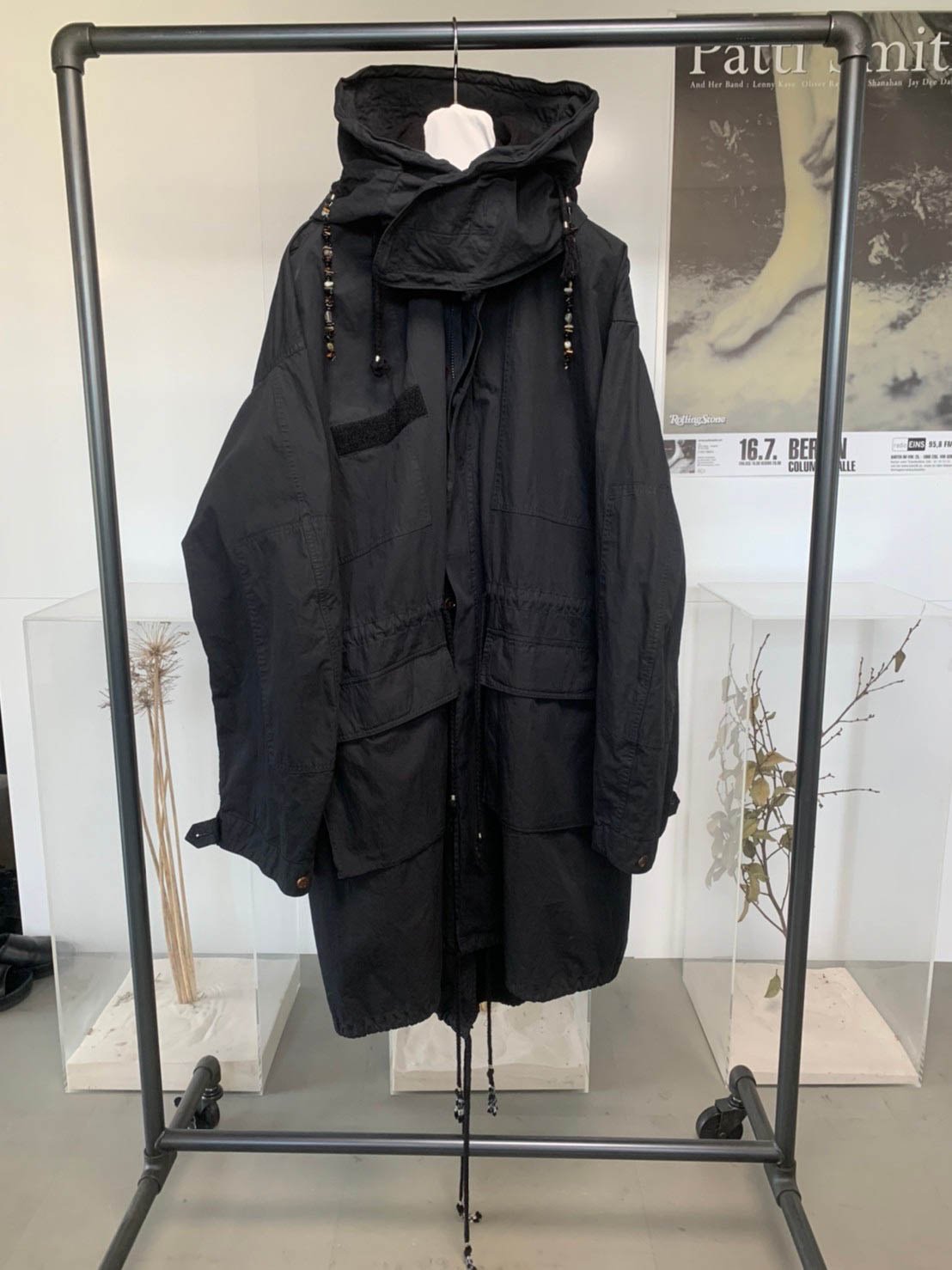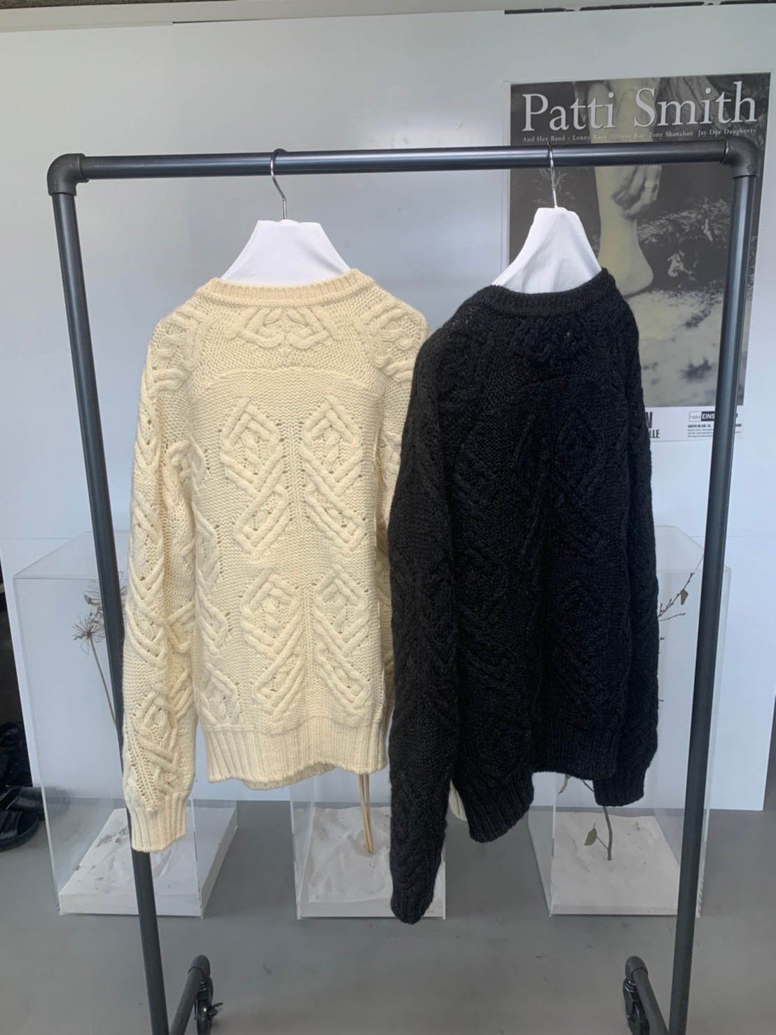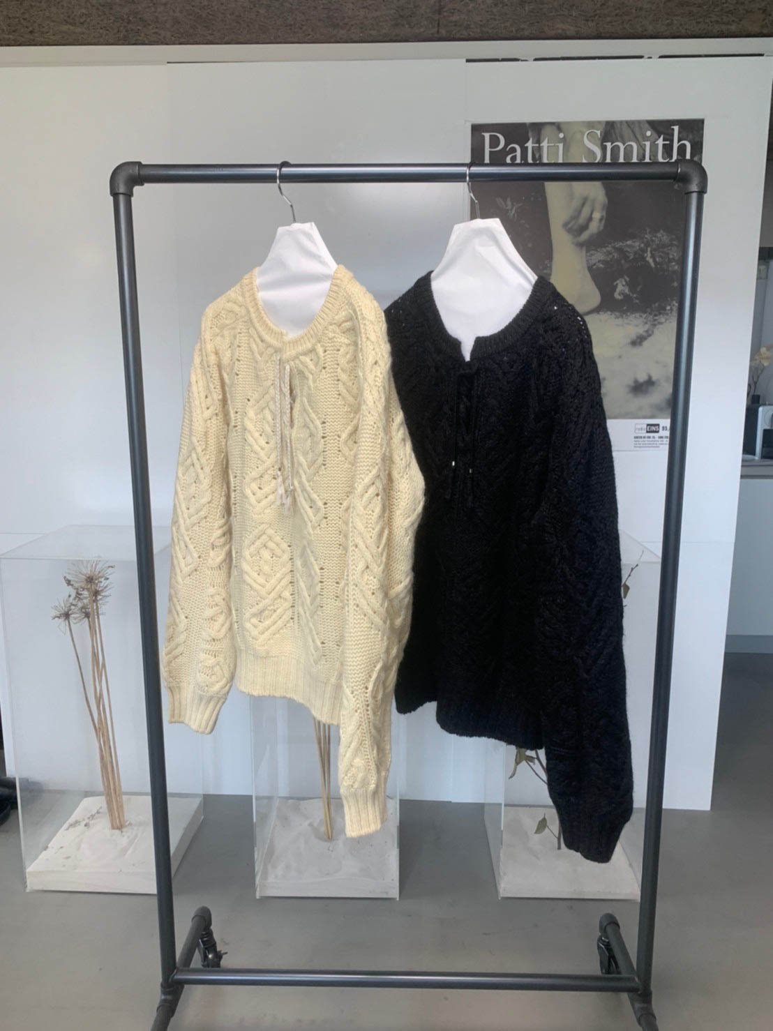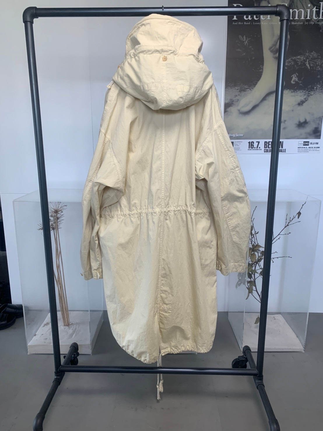 古着のライナーを取り付ける事ができる仕様で、厚みや織り方、素材など実際にミリタリーで着用されるモッズコートを再現した「Over Dyed Mods Parka with Stones」(8万5000円)をはじめ、宮沢賢治の小説に出てくる蝶のモチーフを編み地で表現したニット「Henry Neck Sweater with Butterfly」(3万3000円)や、カシミヤゴートを素材に仕様した巻きスカート「White Fur Skirt」(14万5000円)、クラスの曲の歌詞がプリントされたロングスリーブTシャツ(1万7000円)、スウェット(2万8000円/いずれも税込)など計10型をラインナップする。