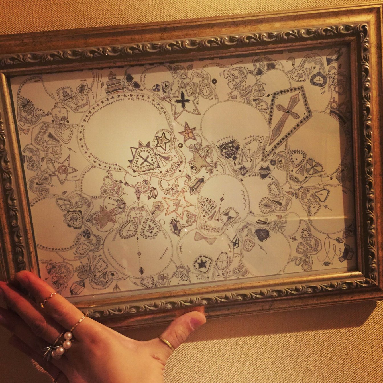 ある時から絵を描き始めてみたのですが、絵は完成したら自分でも「可愛い!」って他の人にも「見てほしい」という気持ちになったんです。芸術系の専門学校に通っていたわけでも、昔から日常的に描いていたわけではなかったのですが、ある日、自分が好きなモチーフでもあるドクロを散りばめた絵を描いてみて、その絵を見せた人に「この絵を“良い”って言ってくれる人が絶対にいるから騙されたと思って描き続けろ」って褒めてもらって。その一言をきっかけに、今でも描き続けています。