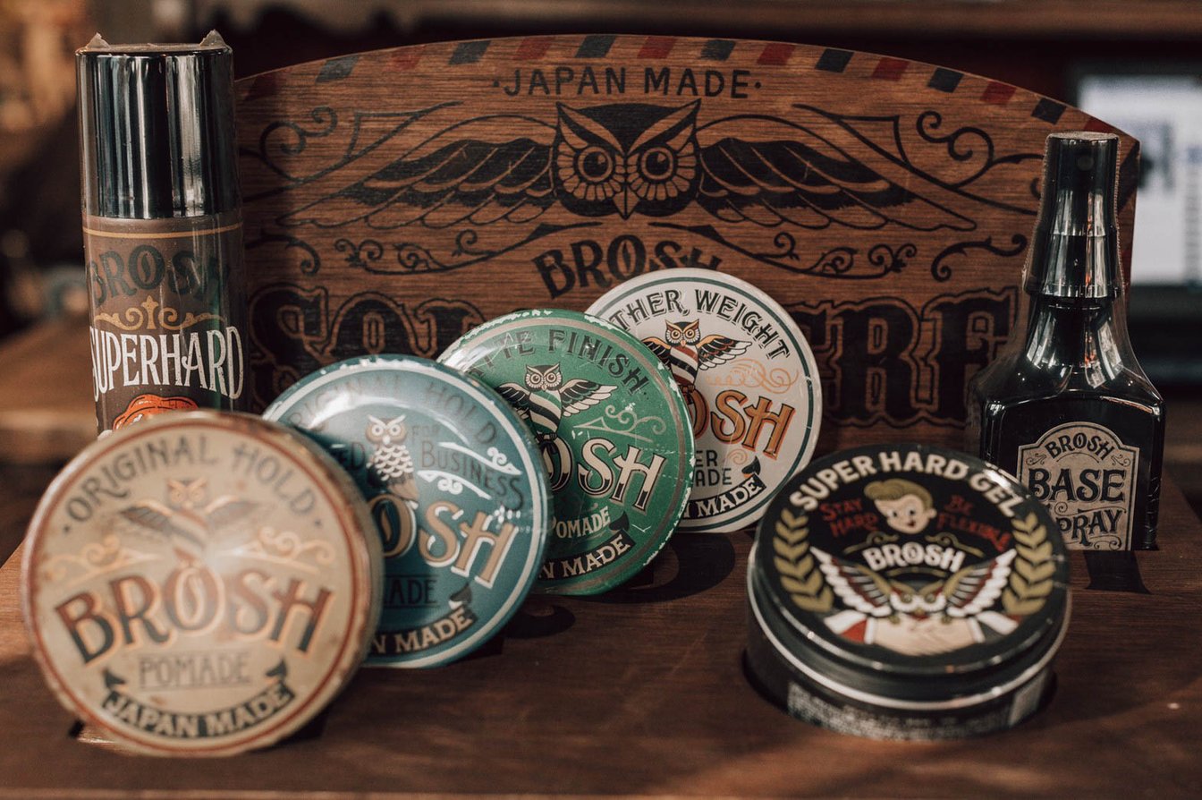 MR.BROTHERS CUT CLUB とBARBER SHOP APACHE(北海道のバーバーショップ)がコラボレーションし、造り上げたフルジャパンメイドのポマード “BROSH POMADE”。アパレルブランドや異業種とコラボし、注目を集めている。