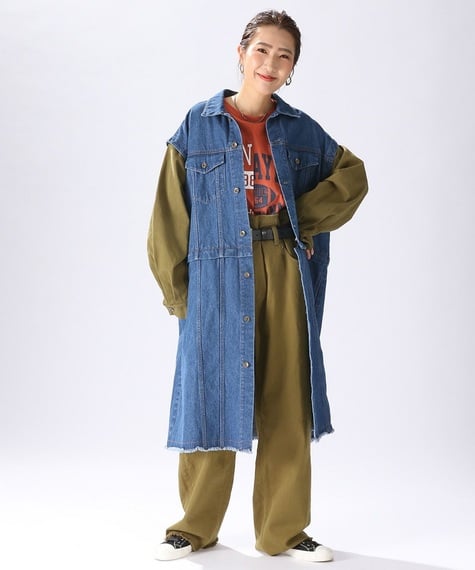 ミサヨさんはママ向けに、体形の変化や1枚でもファッションを楽しみたいとのお得感に応えるアイテムを企画した。特に、欲張りなフォーウェーデニムジャケット(税込み1万3200円)は着脱可能な仕様で、ロングからショート丈、ベストなどにも変わるもので着こなしが楽しめる。ほかにもスリーウェープルオーバーやセルフカットデニムパンツなどを揃えた。