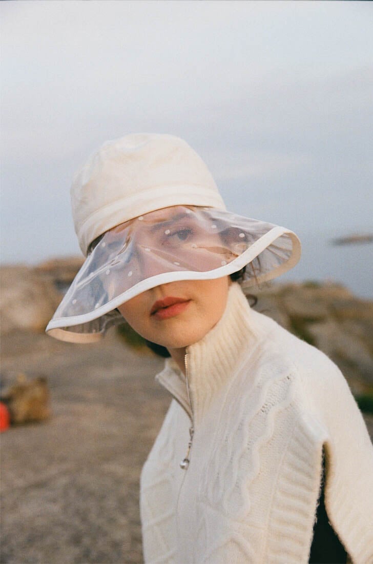 jacket and top by NLY TREND, hat by ELIZABETH STRAY PEDERSEN, earrings by BJ∅RG JEWELLERY