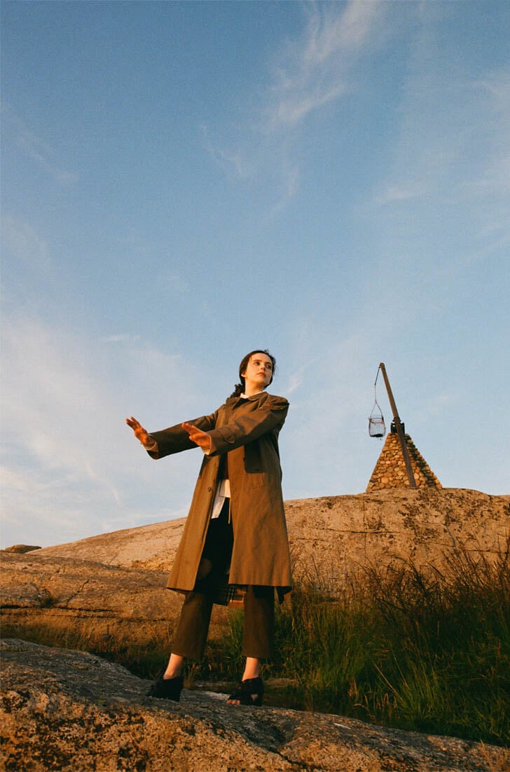 coat by MICHAEL OLESTAD, shirt by CELINE, trousers by ELIZABETH STRAY PEDERSEN, shoes by GRACELAND, earrings by MICHAEL OLESTAD