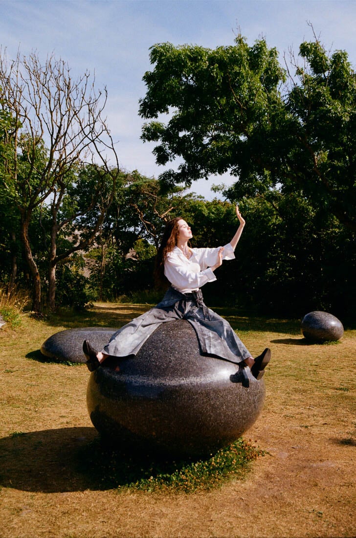 shirt by MICHAEL OLESTAD, trousers by TARINII, shoes by SERGIO BARDI, necklace by BJ∅RG JEWELLERY