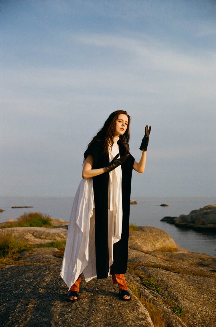 vest by ELIZABETH STRAY PEDERSEN, shirt by PIKIEL, earrings by BJ∅RG JEWELLERY