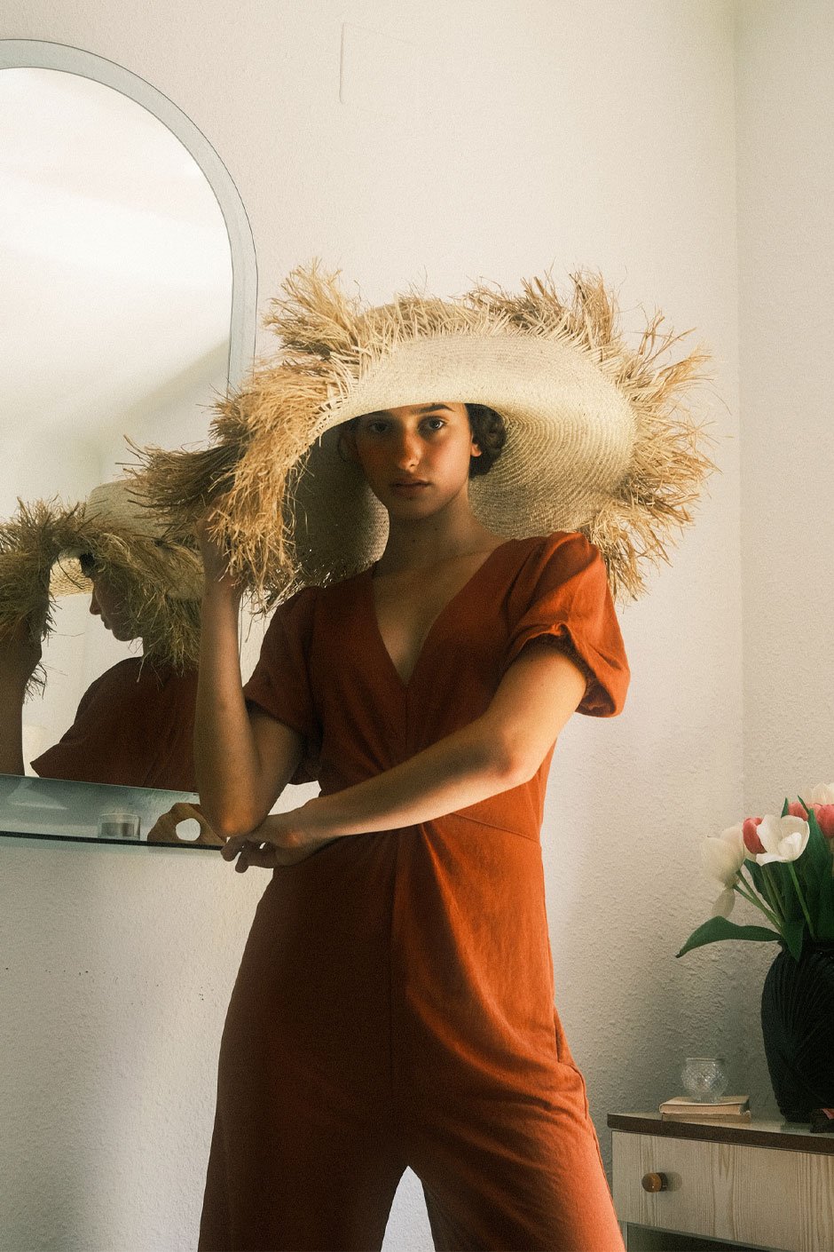 jumpsuit by MANGO, hat by MASHAMO HATS