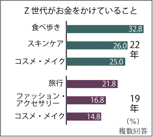 繊研plusSHIBUYA109エンタテイメントの若者マーケティング研究機関、SHIBUYA109ラボが5月に行った「Z世代の旅行・おでかけに関する意識調査」では、約3割が食べ歩きにお金をかけ、近場で旅するスタイルが定着したとしている。