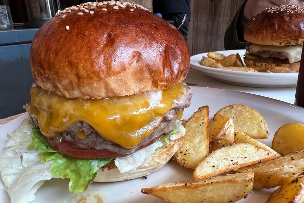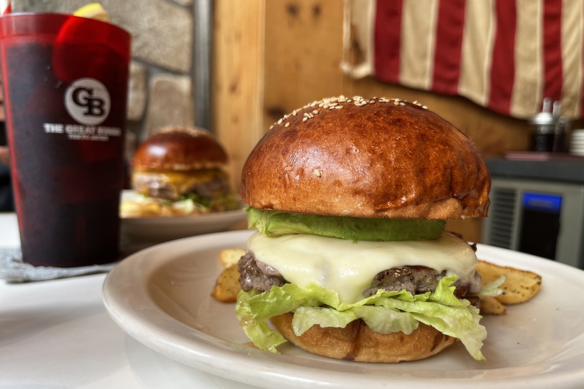 GBといえば天然酵母の特製パンを使用した肉厚パティのハンバーガーだ。種類も豊富で迷ってしまう。この日はたっぷりのチーズが魅力の2種類のハンバーガーをオーダーした。レッドチェダーのメルト感がグッドなダブルチーズバーガーは、チーズも肉も2まいづつ入ったハンバーガー。ふわカリに焼かれたバンズ、コクのあるチーズ、パティの肉汁の旨味が混ざり合い、味はもちろん最高だし、食べ応えは抜群だ。
