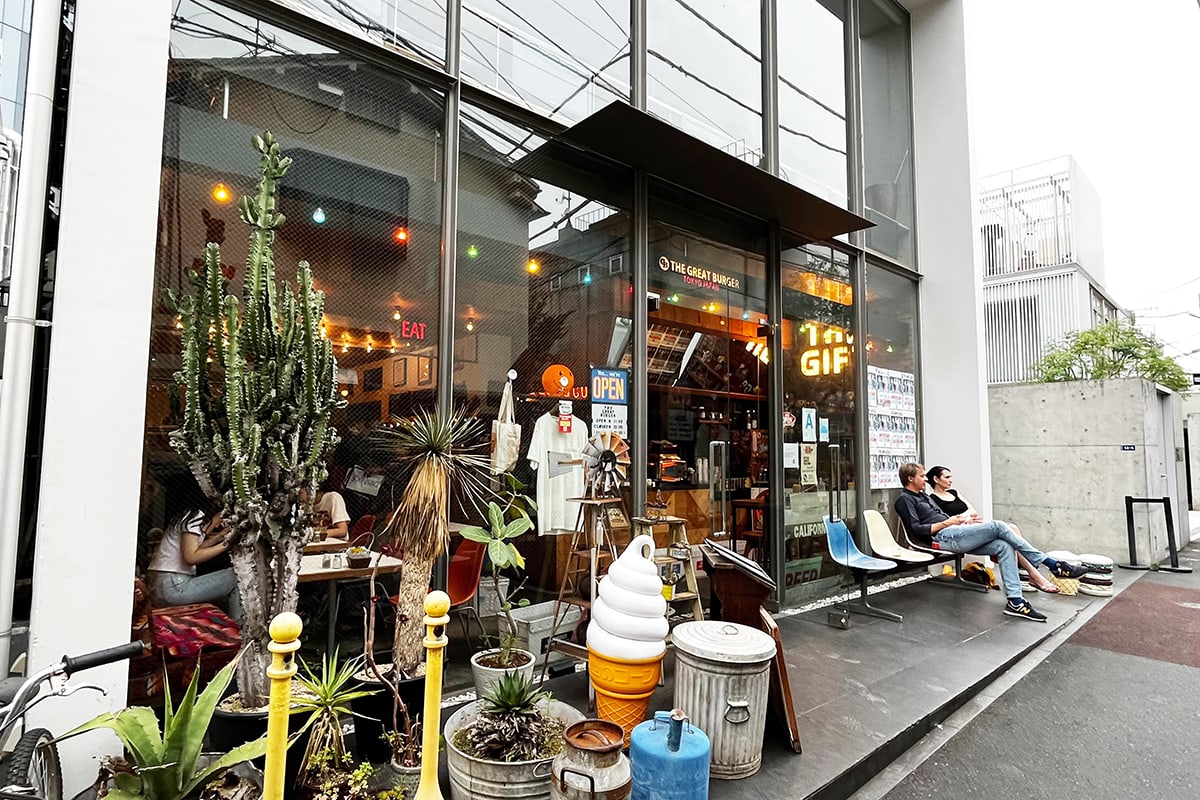 原宿に来たらこのお店が頭を過ぎる人も多いのではないだろうか。THE GREAT BURGER(以下:GB)がある神宮前6丁目、キャットストリートから一本裏手の路地に入ったエリアは人気店が多く、GBを筆頭に週末ともなればあちこちで行列が出来ている。平日でも昼間は混むが、空いている時間を狙って足を運べるところに編集部があるというのは幸せかもしれない。