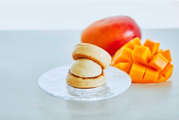 チョコ和菓子を提案する「カカオハナレ長谷店」には、7月1日(金)から31 日(日)までの土日限定で『生どら焼き マンゴー』(税込648円)がお目見え。